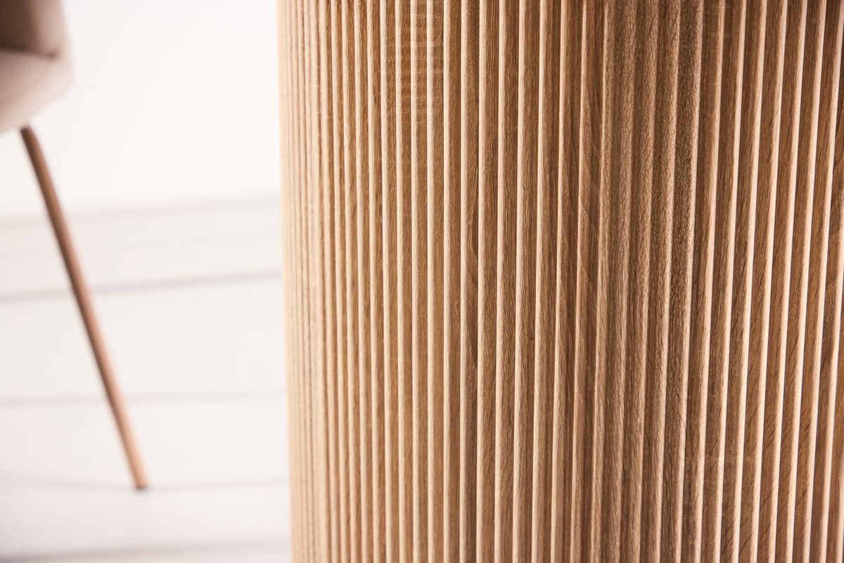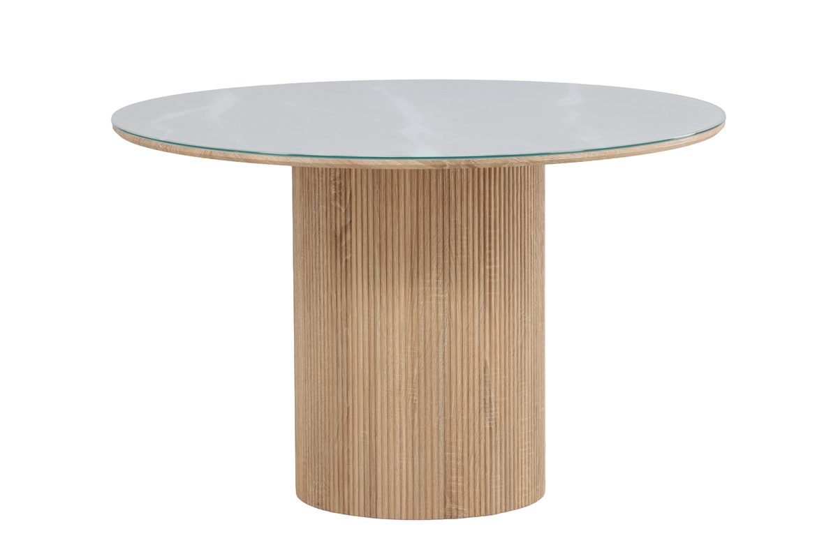Härön — элегантный и современный обеденный стол, сочетающий в себе стильный внешний вид с уютной и гостеприимной атмосферой. Светлая цветовая гамма и продуманный дизайн делают его естественным украшением дома — идеально подходящим для утреннего кофе или ужина с друзьями и семьей. Диаметр стола составляет 120 см, что позволяет с комфортом разместить 4-6 человек. Закругленная стеклянная столешница придает столу воздушность и изысканность, красиво отражает свет и легко моется. Особенностью Härön является ребристая цилиндрическая ножка — декоративная деталь, которая добавляет дизайну индивидуальности и структуры, сохраняя при этом сдержанность. Сочетание материала и формы создает уникальный баланс между современной эстетикой и вневременным стилем стола.