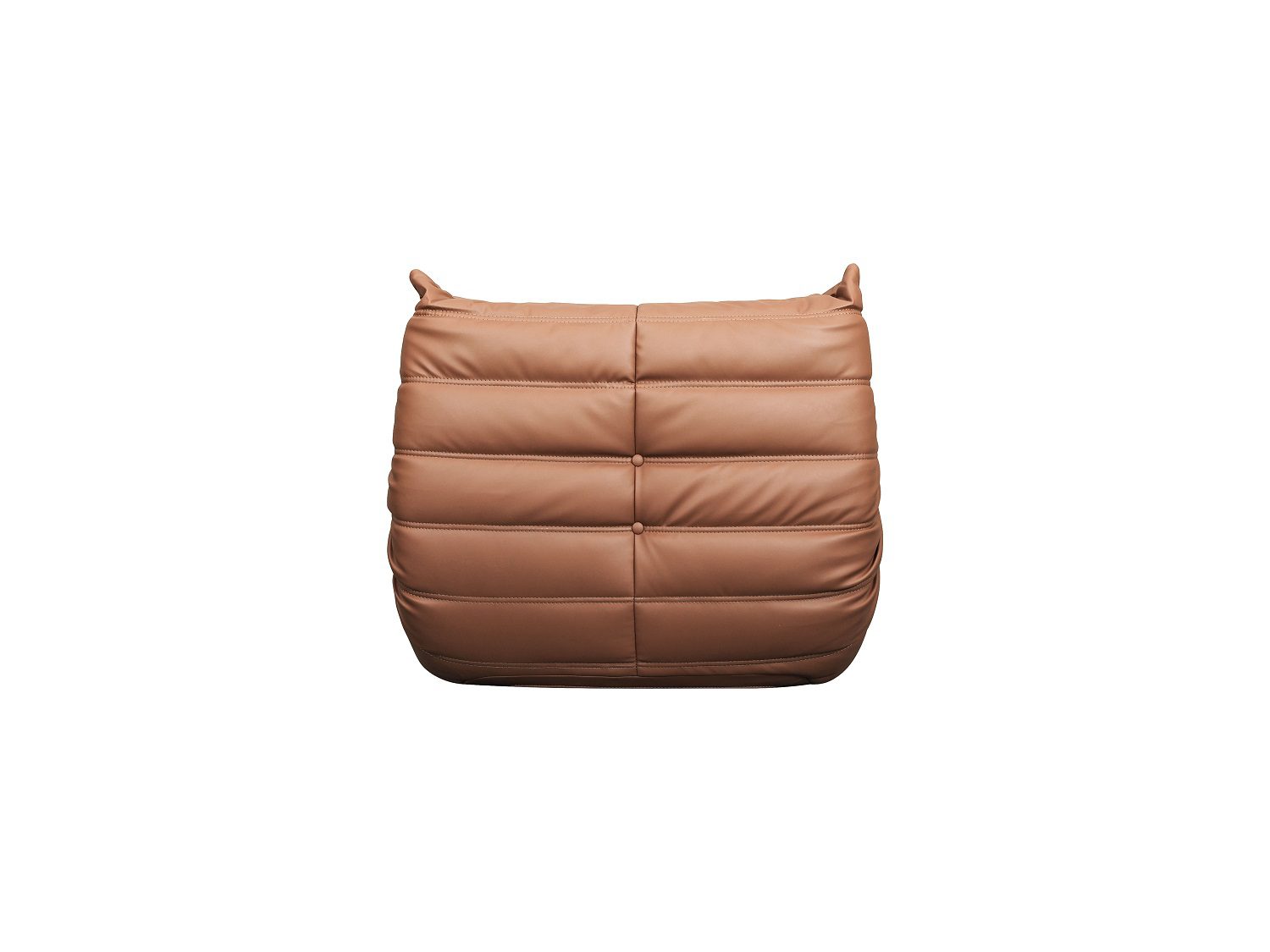 Современное и культовое кресло для отдыха с простой формой, украшенное горизонтальными швами и стеганой центральной вертикальной линией. Кресло карамельно-коричневого цвета идеально дополнит современную гостиную. Кресло изготовлено из экологичной кожи и пенополиуретана. Цвет: карамельно-коричневый.