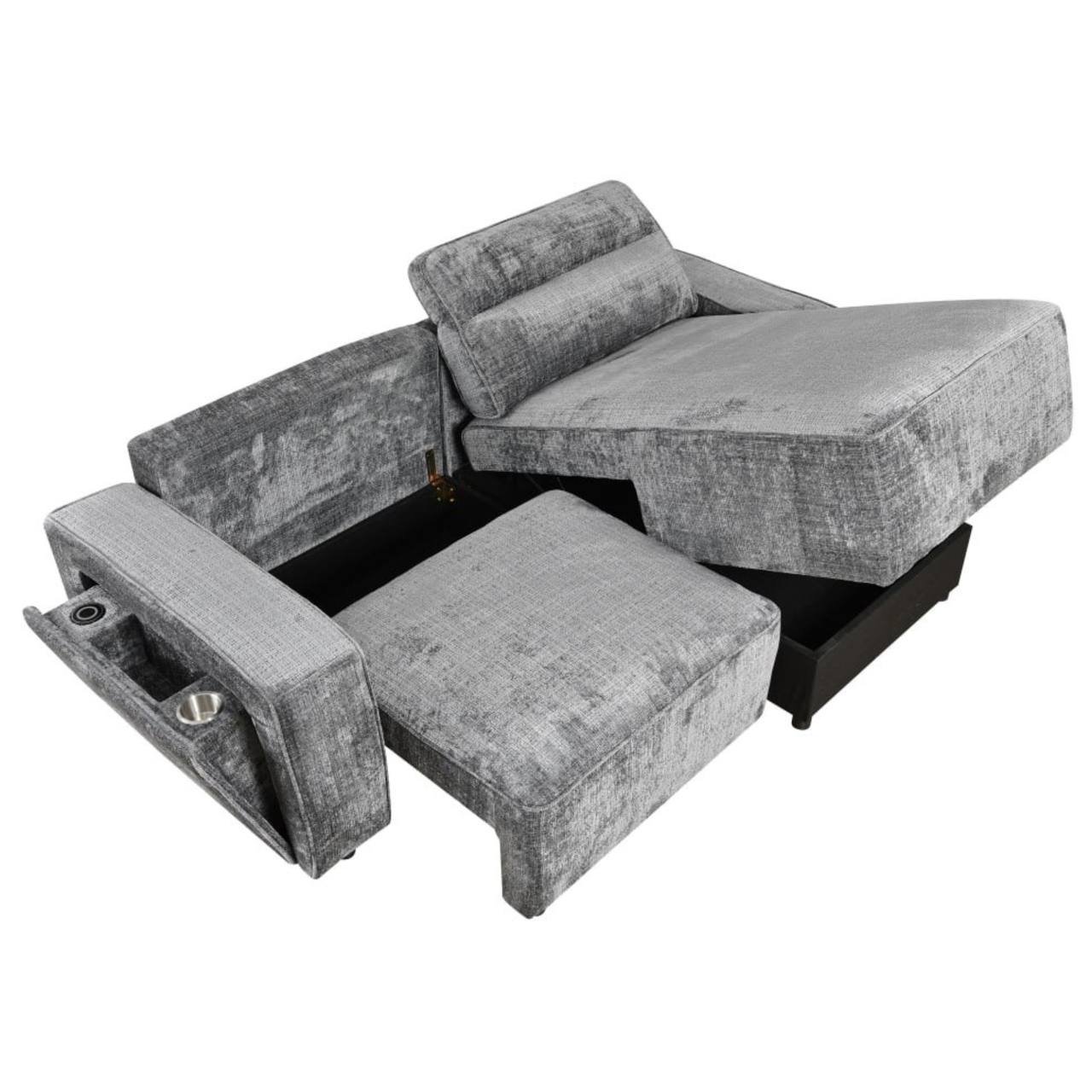 Современный угловой диван-кровать Softy с практичным дизайном и продуманными функциями. Встроенное зарядное устройство USB для телефона и держатель для бутылок обеспечивают удобство повседневного использования. Диван-кровать имеет просторную спальную зону размером 153 × 194 см, которая отлично подходит как для ежедневного отдыха, так и для размещения гостей.