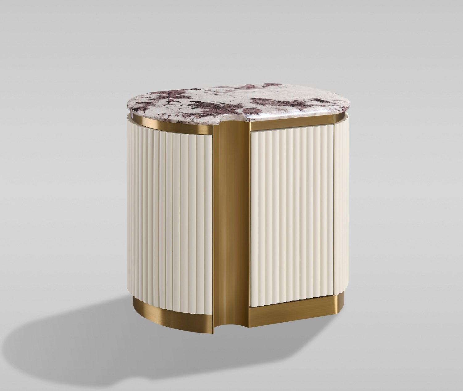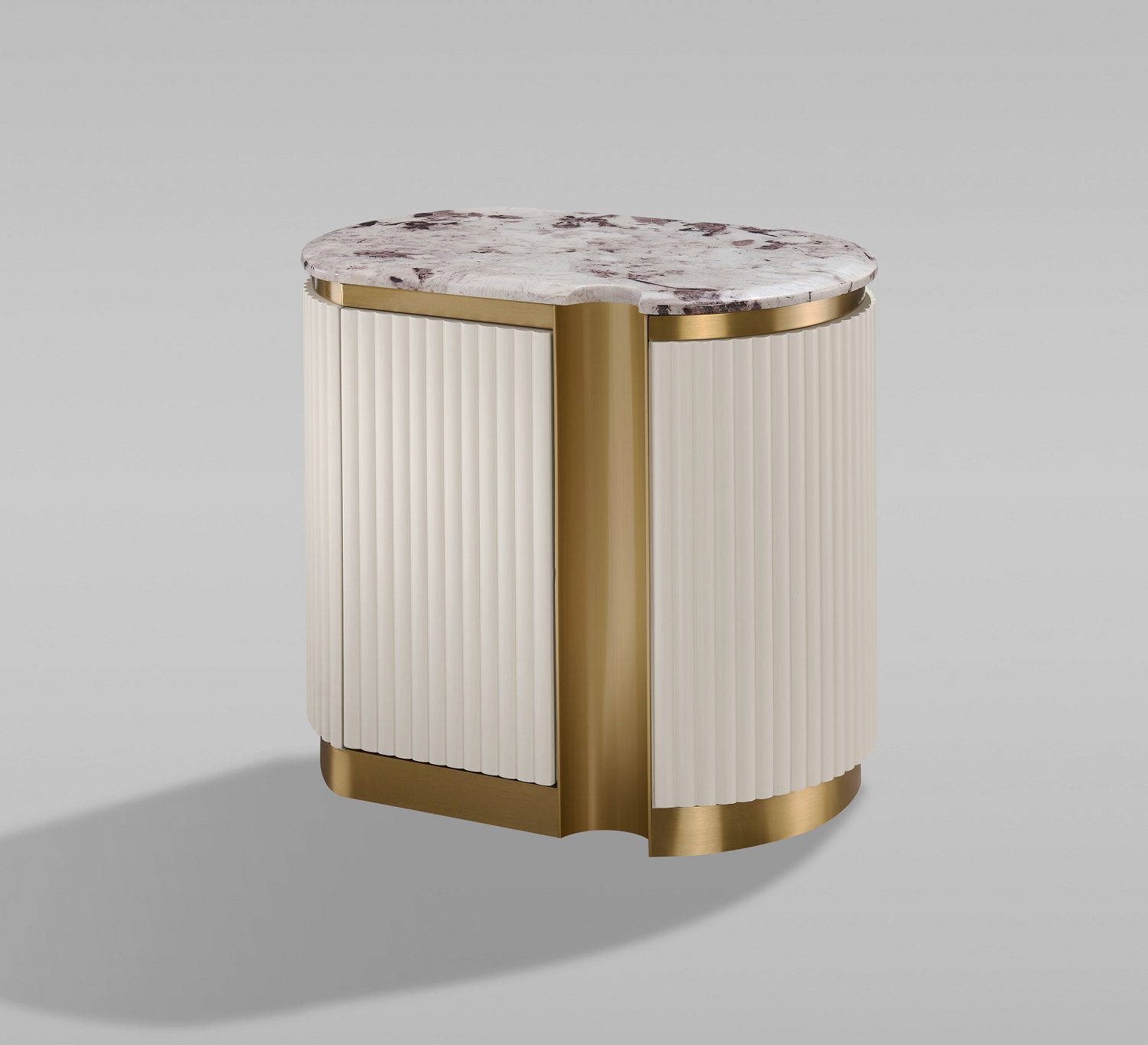 Прикроватная тумба изготовлена из МДФ, искусственного мрамора и нержавеющей стали. Цвет ножек – золотой. Код цвета: RAL 1013.