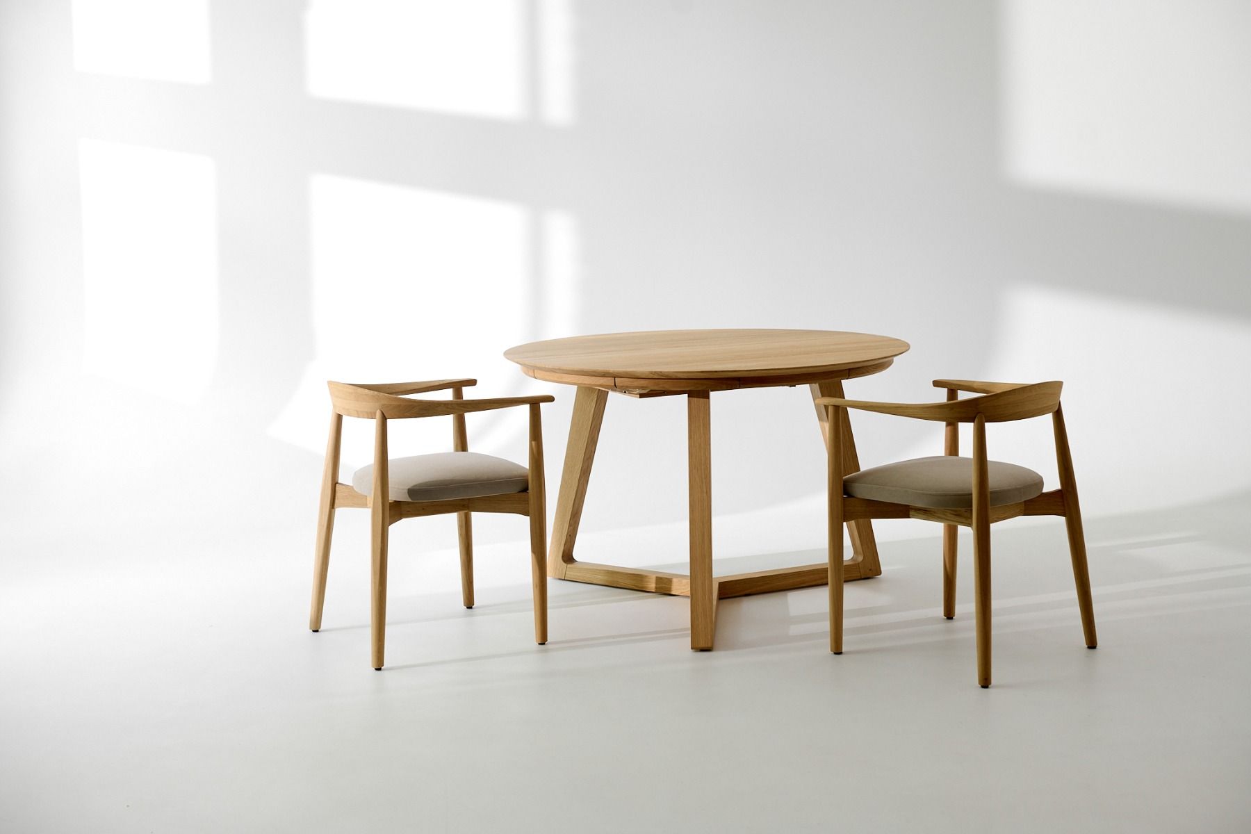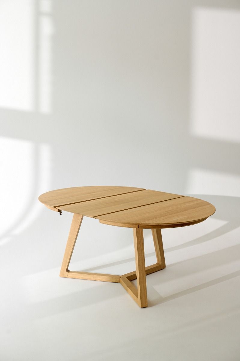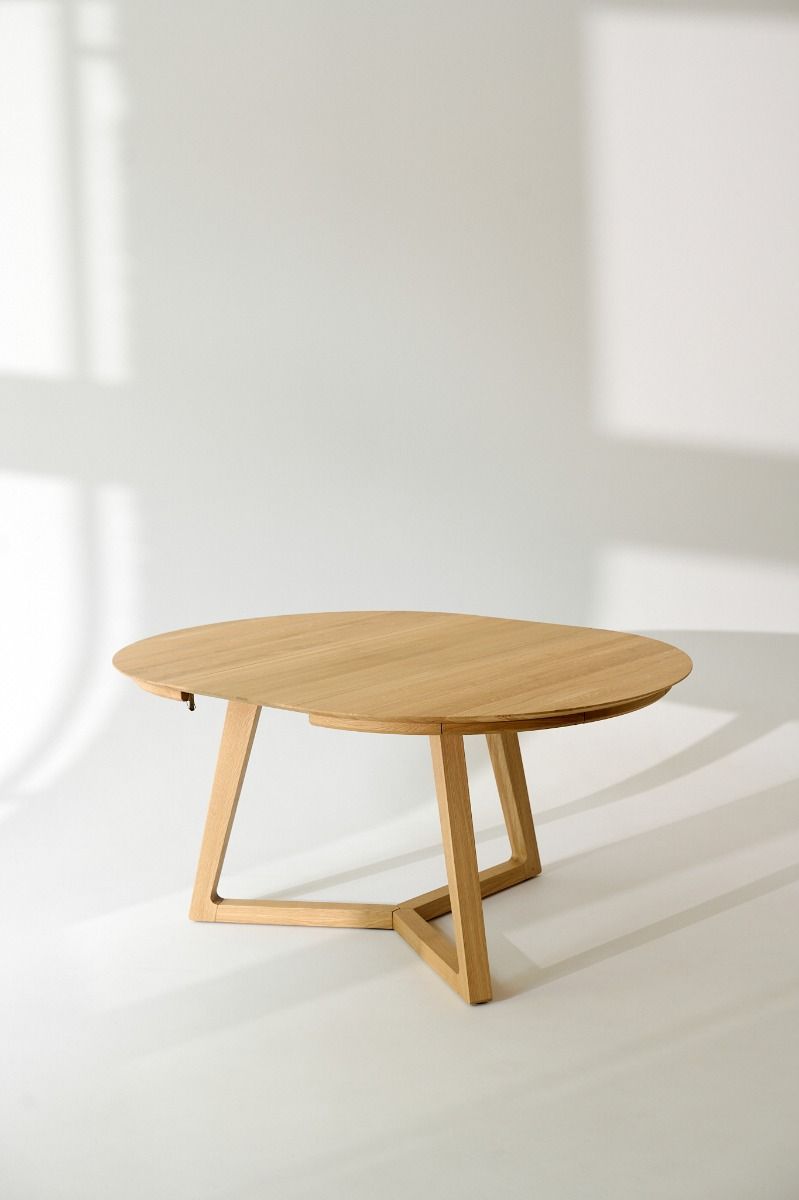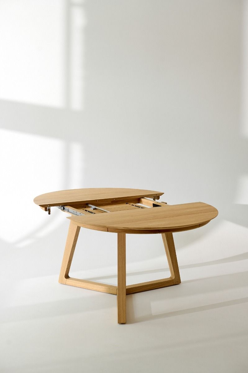 Круглый обеденный стол Tondo отличается простотой формы и конструкции: он функционален, продуман и современен. Благодаря синхронному удобному раскладыванию этот стол идеально подходит для встреч большой компании. Прочная конструкция из трех соединенных ножек обеспечивает удобство использования и превосходную устойчивость стола. Вставка стола длиной 45 см постоянно скрыта в механизме под столешницей. Благодаря этому раскладывание происходит легко и не требует дополнительного хранения. Стол из массива дуба будет радовать вас долгие годы. Слегка скошенный верх придает его решительной форме утонченность. Tondo — это также дизайнерский стол, оригинальный и в то же время обладающий вневременной элегантностью древесины дуба. Он будет идеальным в современном, скандинавском или деревенском интерьере.
