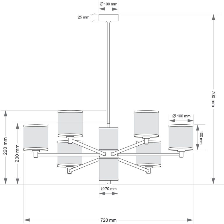 Valgustite kõrgust saab reguleerida keti pikkuse järgi (min 92 cm, max 312 cm).