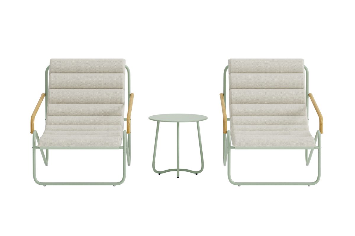 Mugavad ja pehmelt polsterdatud tugitoolid on loodud tõeliseks lõõgastumiseks, võimaldades nautida pikki suviseid hetki värskes õhus. Komplekti kuuluv kompaktne laud pakub praktilist pinda kohvi, jookide, raamatute või muude väiksemate esemete jaoks.