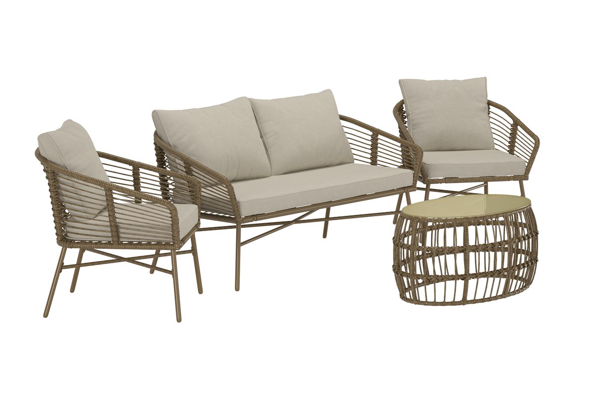 Lipari diivanikomplekt loob teie terrassile, rõdule või aeda mõnusa ja stiilse koosviibimiskoha. Komplekti kuuluvad ruumikas diivan, kaks mugavat tugitooli ning elegantne laud – ideaalne lahendus nii lõõgastumiseks kui ka sõpradega aja veetmiseks.