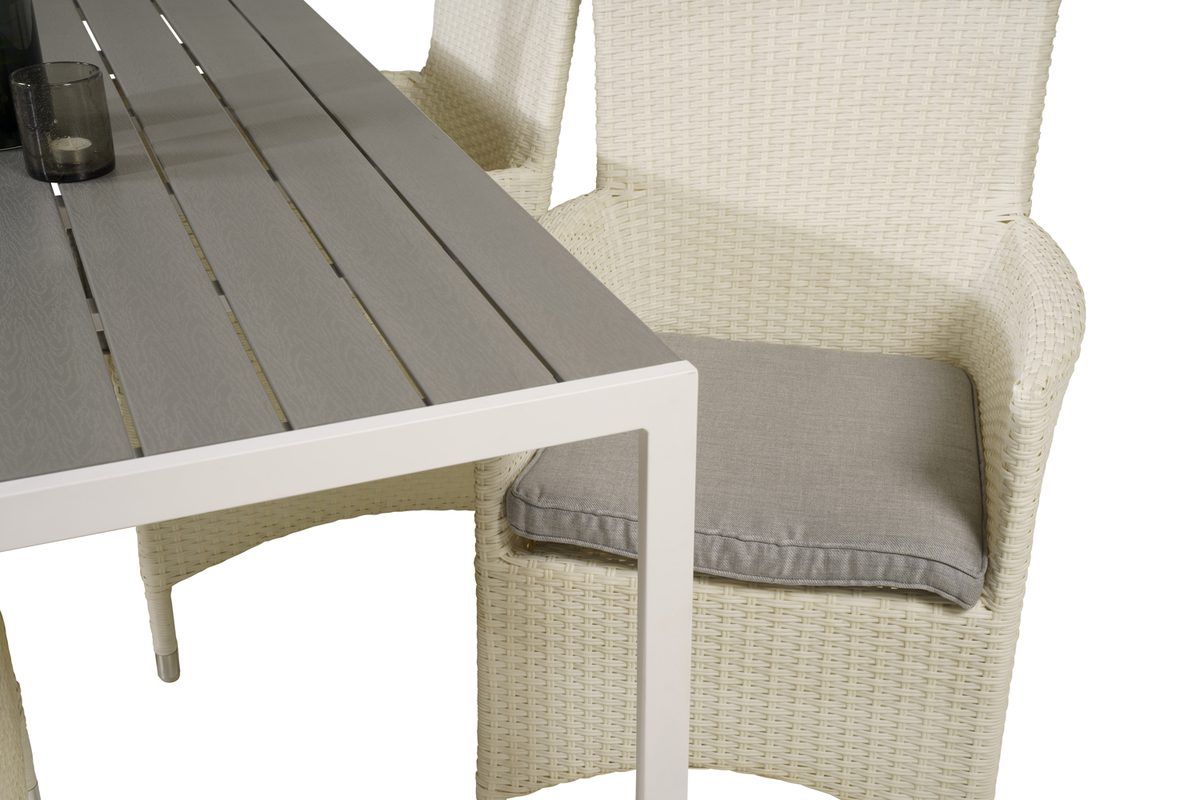 Loo oma õuealale stiilne ja lihtne sööginurk, mis mõjub ühtaegu soe, loomulik ja kutsuv. See hoolikalt valitud komplekt ühendab praktilisuse ja ajatu disaini, sobides ideaalselt nii terrassile, aeda kui ka rõdule. Koos Malin söögitoolidega saad tervikliku lahenduse, mis on loodud mugavateks ja meeldejäävateks hetkedeks õues. Malin söögitoolid pakuvad suurepärast istumismugavust tänu pehmetele patjadele ja ergonoomilisele kujule. Valge toon koos punutud detailidega loob kerge ja naturaalse ilme, samas kui vastupidavad materjalid tagavad pika kasutusea ka välitingimustes. Virnastatav disain muudab toolid praktiliseks ja kergesti hoiustatavaks.