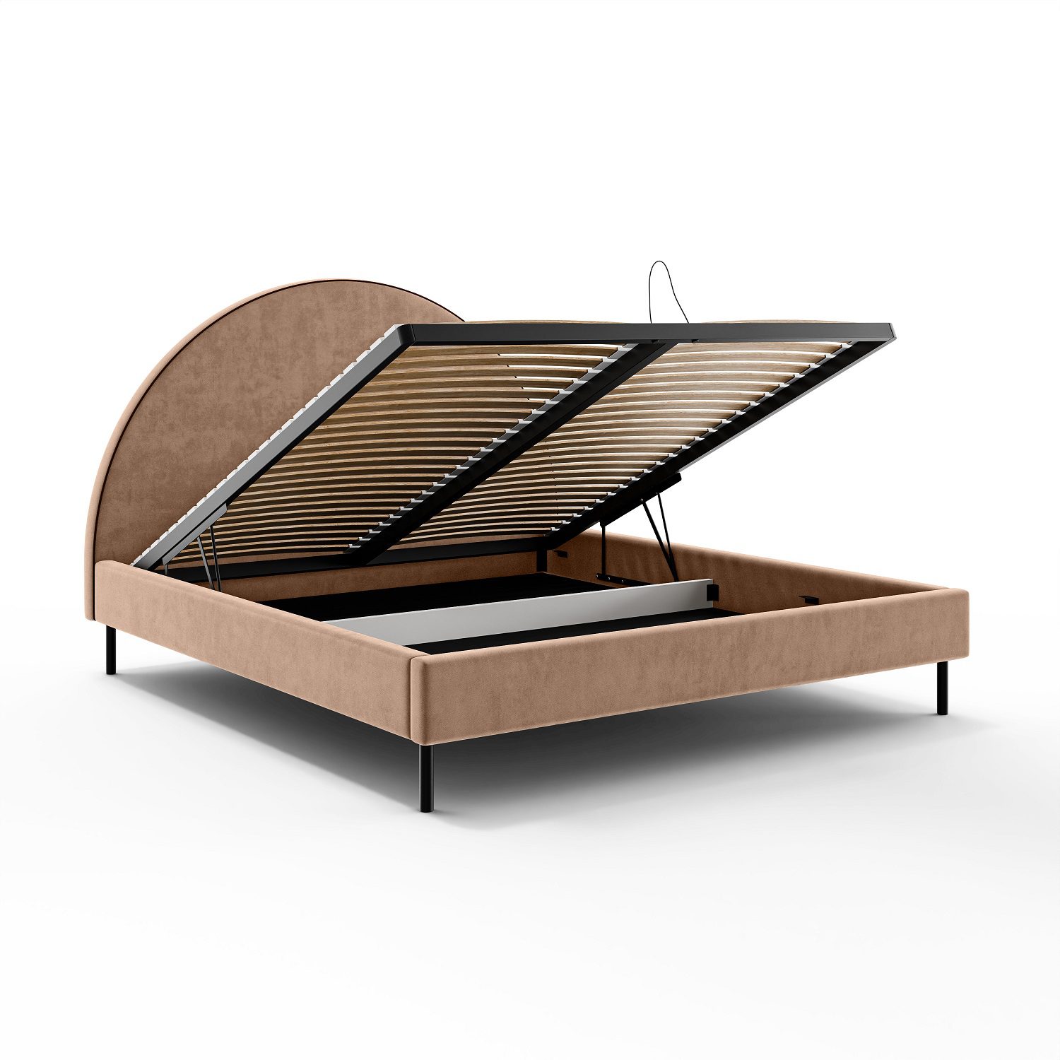 Pehme voodi MOON on elegantne tõlgendus looduse ilust – poolkaarekujuline peats on inspireeritud päikesetõusudest ja -loojangutest ning kiirgab soojust ja harmooniat. Selle kerge voodiraam, mis meenutab horisondi jooni, annab mööblile õhulisuse ja avaruse mulje. Moon voodi on ideaalne koht lõõgastumiseks, tuues magamistuppa rahu ja mugavuse atmosfääri ning luues meelte jaoks tõelise oaasi. Voodi on standardvarustuses varustatud voodipesu hoiukastiga ja metallist tõsteraamiga, mille mõlemal küljel on 24 lamelli – kokku 48 lamelli.