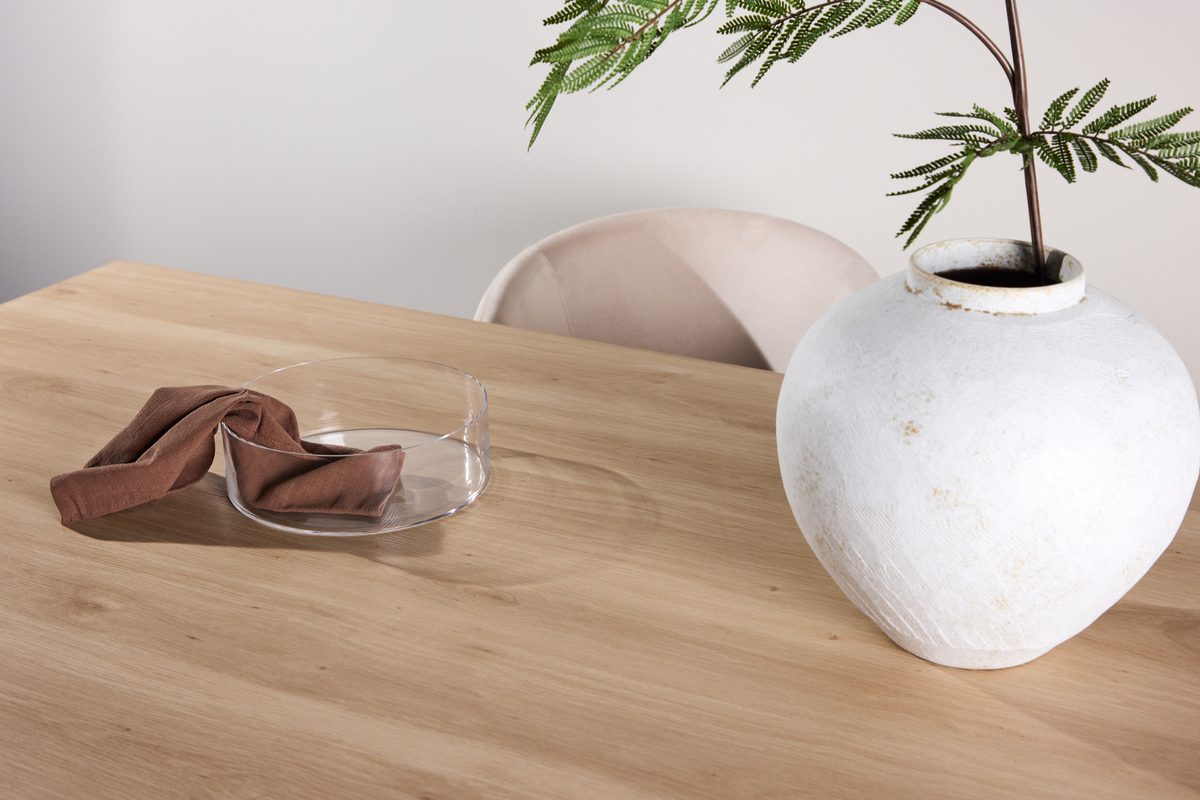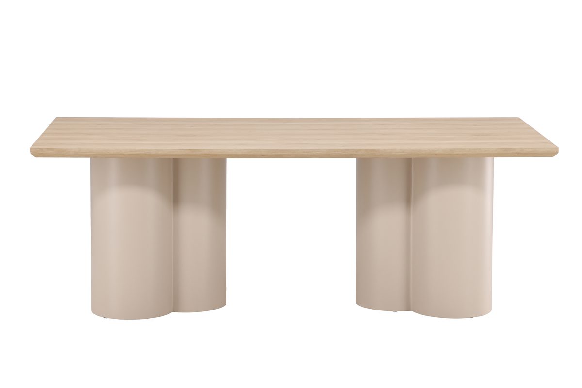 Olivia – söögilaud, kus on ruumi nii stiilile kui ka seltskonnale. Olivia on elegantne ristkülikukujuline söögilaud, mis ühendab looduslähedased toonid modernse siluetiga. Avatud lauaplaat valgendatud puidu imitatsioonis loob helge ja õhulise mulje, samal ajal kui kaks tugevat sooja beeži tooni jalga pakuvad pehmet kontrasti, mis sobib suurepäraselt enamiku sisustusstiilidega. Mõõtmetega 210 × 100 cm pakub Olivia küllaldaselt ruumi nii igapäevasteks õhtusöökideks kui ka suuremateks koosviibimisteks. See on ideaalne valik kõigile, kes otsivad trendikat, kuid ajatut söögilauda, kus on alati ruumi ühtekuuluvuseks.