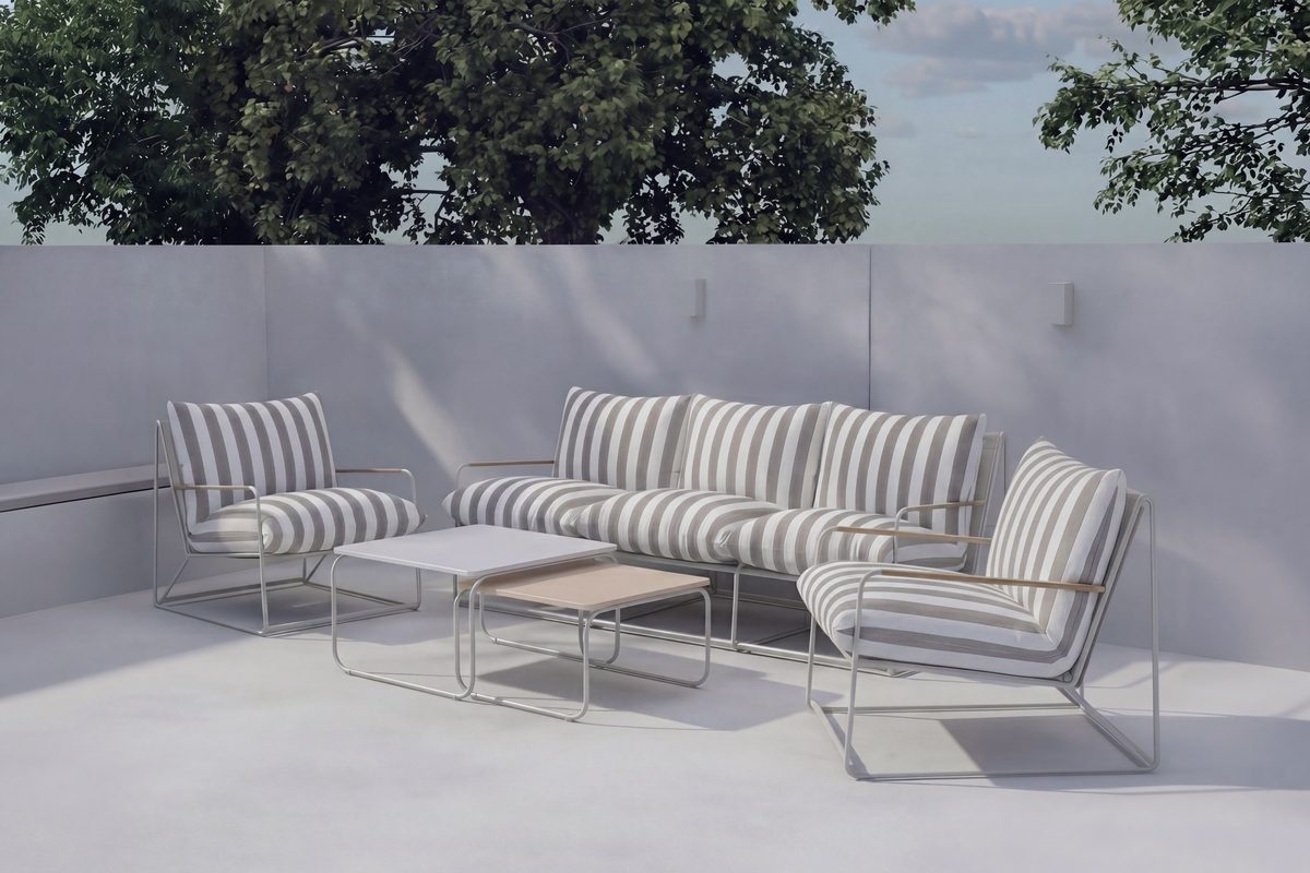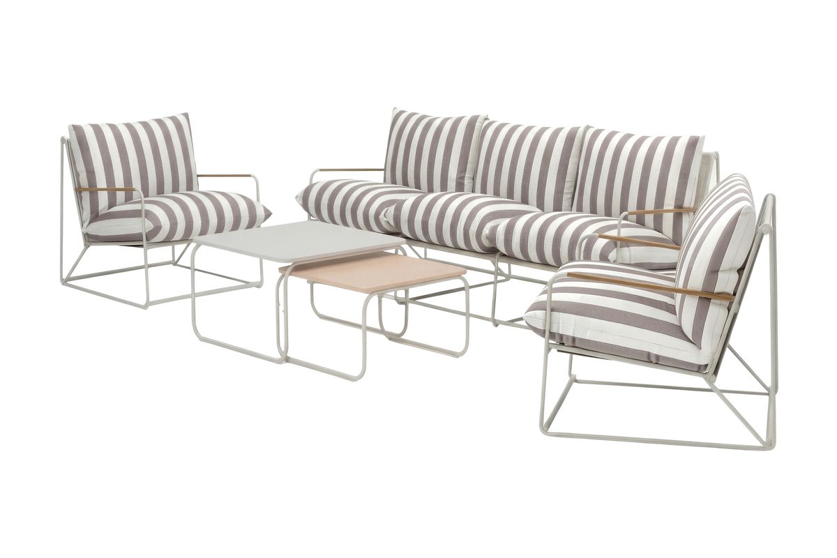 Palazzo diivanikomplekt on stiilne ja mugav lounge-komplekt, mis lisab sinu õuealale isikupära. Valge raam ning klassikalised beeži ja valgete triipudega padjad loovad ajatu disaini, mis on ühtaegu kutsuv ja elegantne. Komplekt koosneb avarast diivanist, kahest tugitoolist ning sobivast lauast, muutes selle ideaalseks nii lõõgastumiseks kui ka seltskondlikeks hetkedeks. Palazzo diivanikomplekt ühendab parimal viisil mugavuse ja kaasaegse disaini.