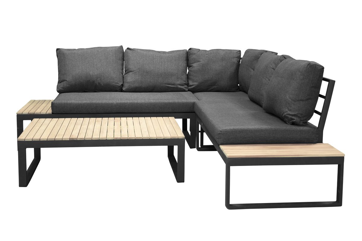 Panama nurgadiivan on modernne ja praktiline välidiivan, mis pakub mugavat istumiskohta kuni neljale inimesele. Komplekti kuulub nurgadiivan koos kahe integreeritud külglauaga, mis on valmistatud mustast pulbervärvitud metallraamist ning akaatsiapuidust lauapindadest.