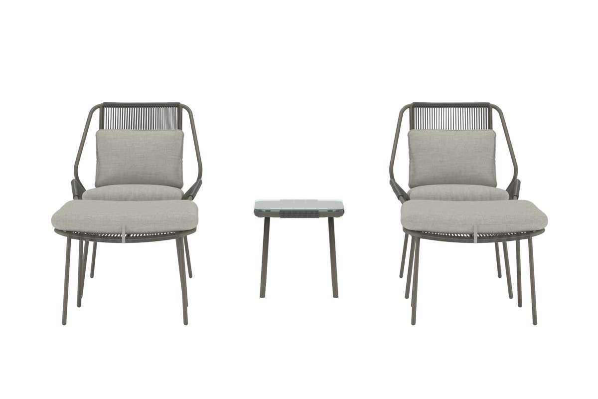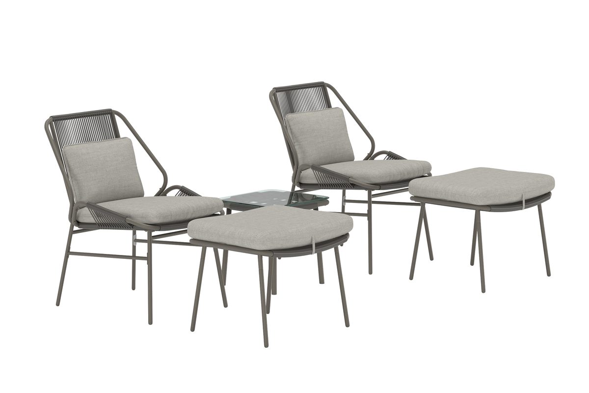 Zakynthose lounge-komplekt pruuni tooniga on stiilne ja mugav mööblikomplekt, mis kutsub lõõgastuma. Komplekti kuuluvad kaks pehmete patjadega tugitooli, kaks sobivat jalatuge ning klaasist lauaplaadiga väike laud – ideaalne harmoonilise lounge-ala loomiseks terrassile, aeda või basseini äärde. Pruun raam koos pehmete patjadega loob sooja ja elegantse ilme, mis sulandub kergesti erinevatesse õuekeskkondadesse. Zakynthose lounge-komplekt on ideaalne valik neile, kes soovivad ühendada mugavuse ja kaasaegse disaini.